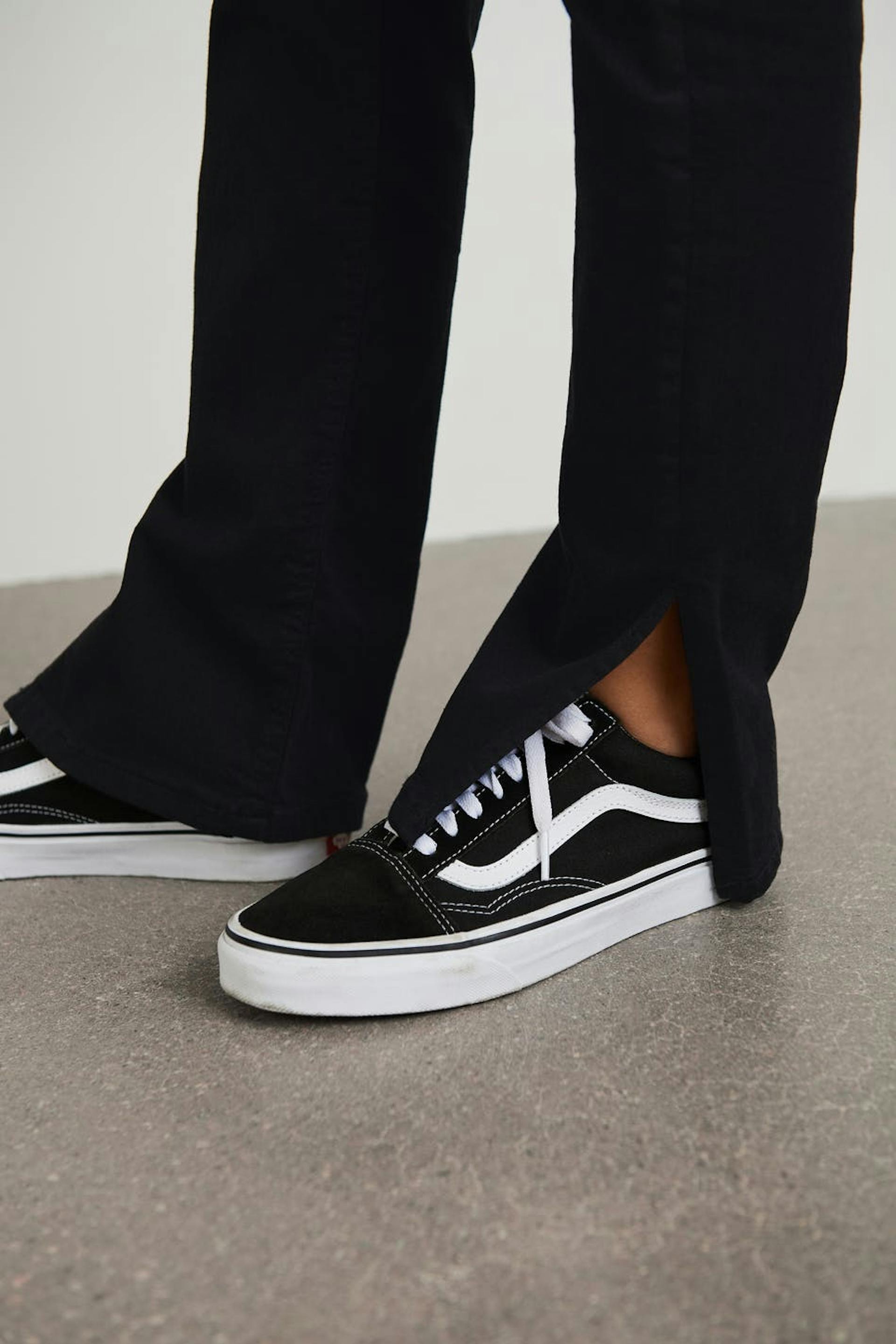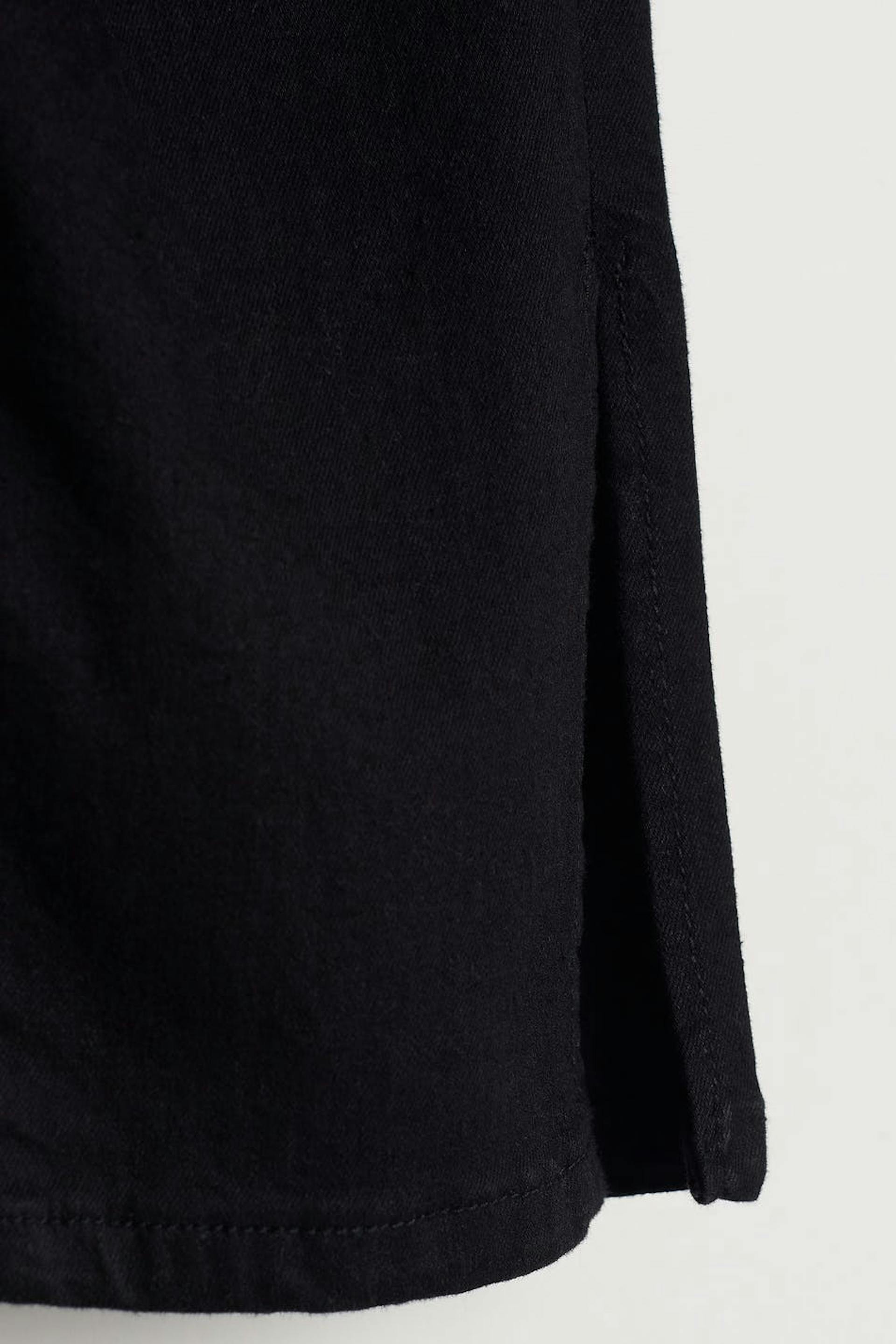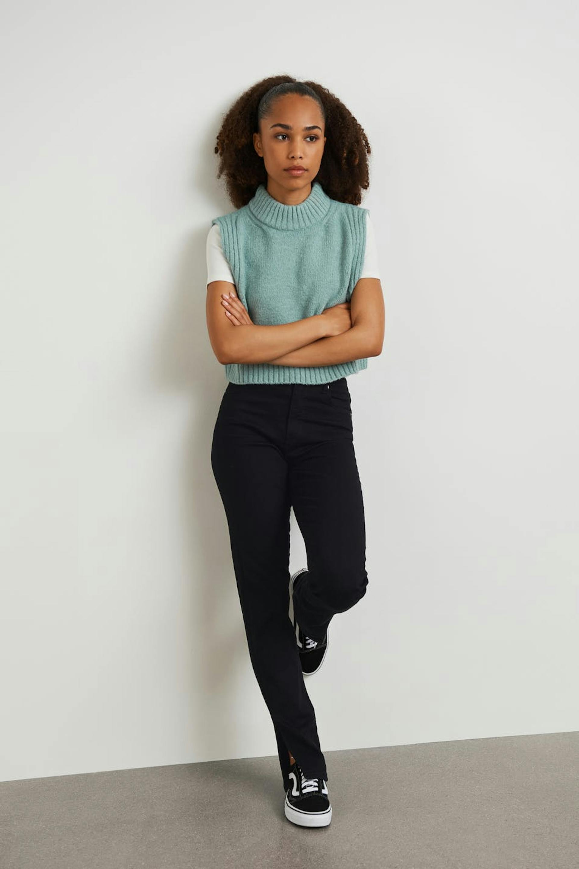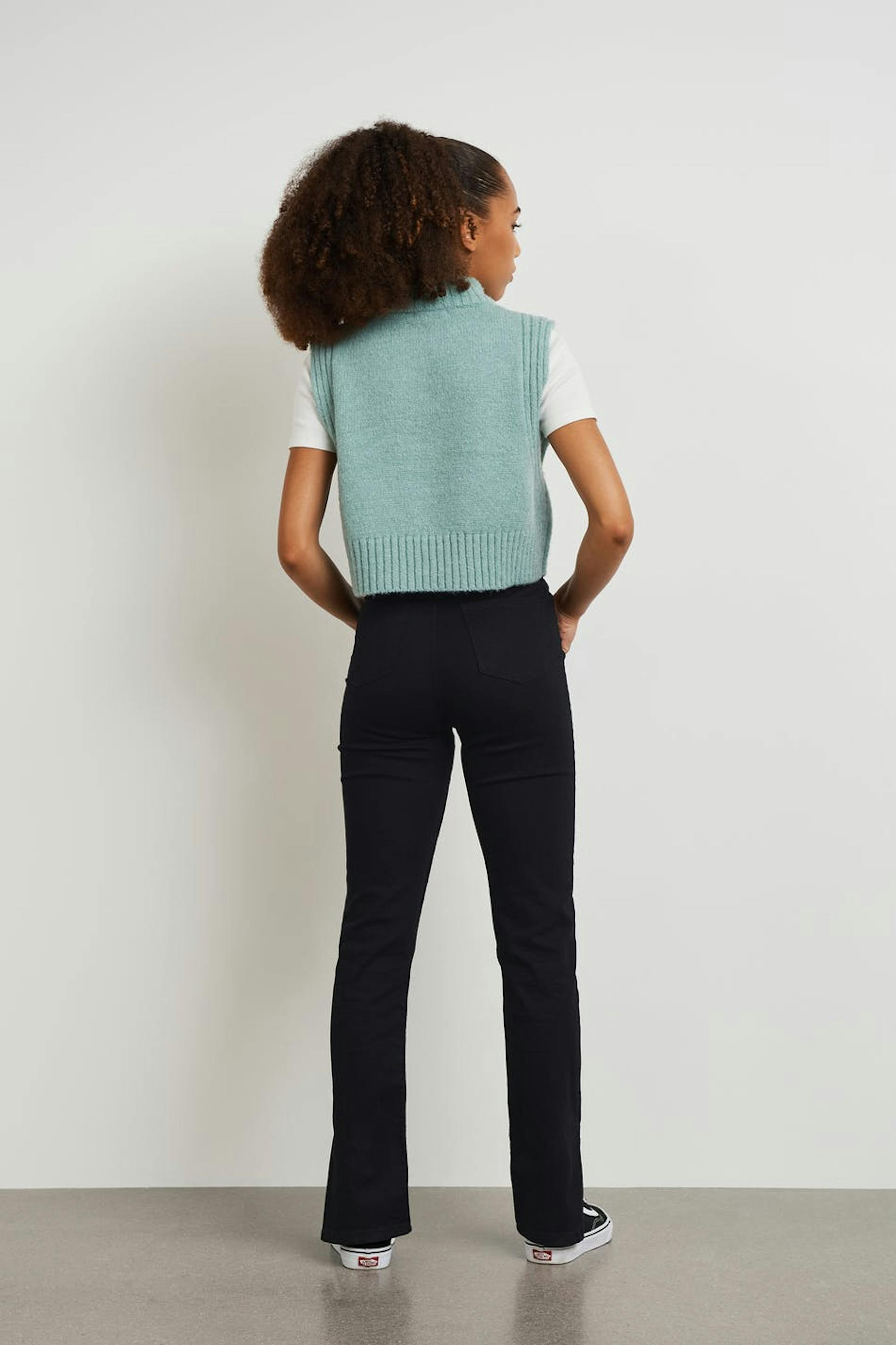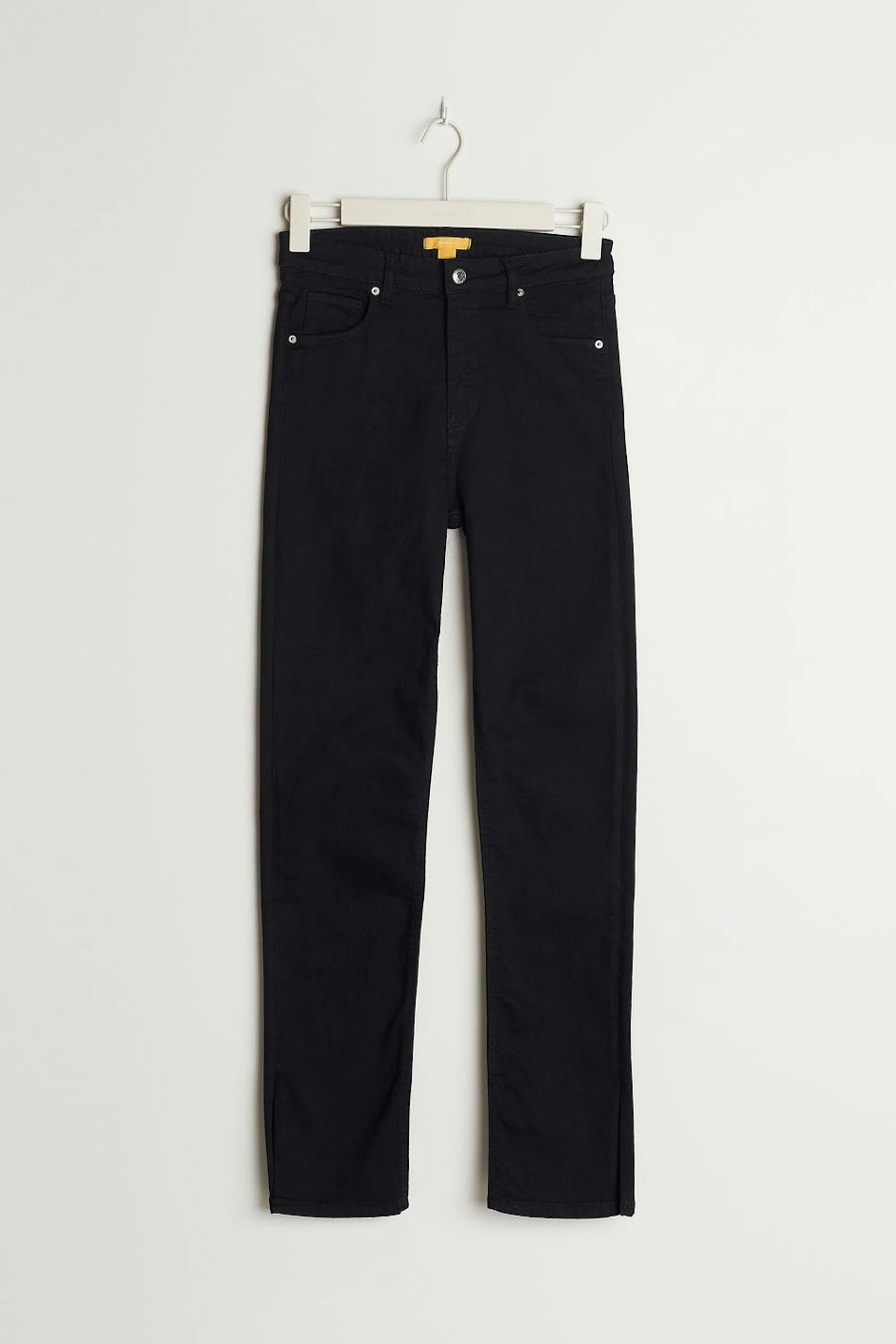 Raka jeans från vårt Young-sortiment med en normal passform. Jeansen är svarta och har en hög midja. De har bekväm superstretch, en slits vid bensluten, en justerbar resår i midjan upp till storlek 152 cl och fickor fram och bak.
