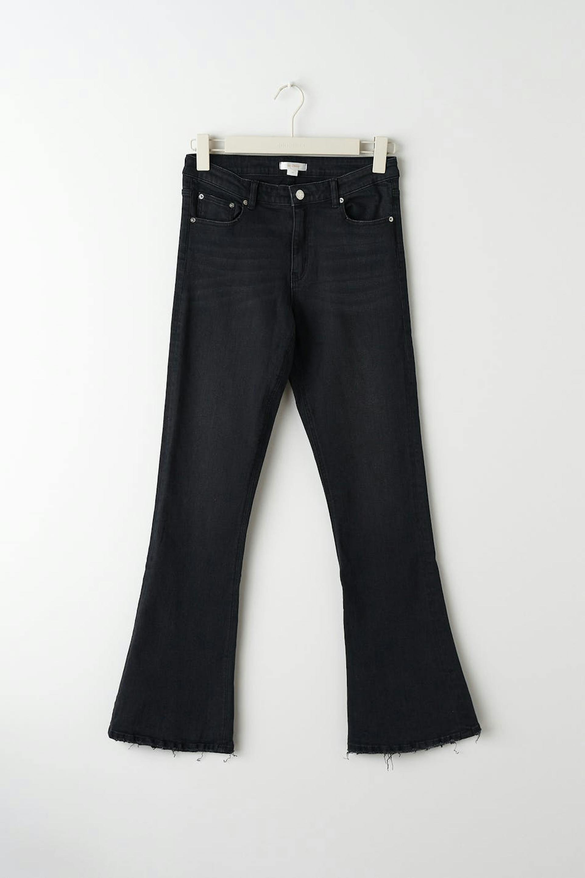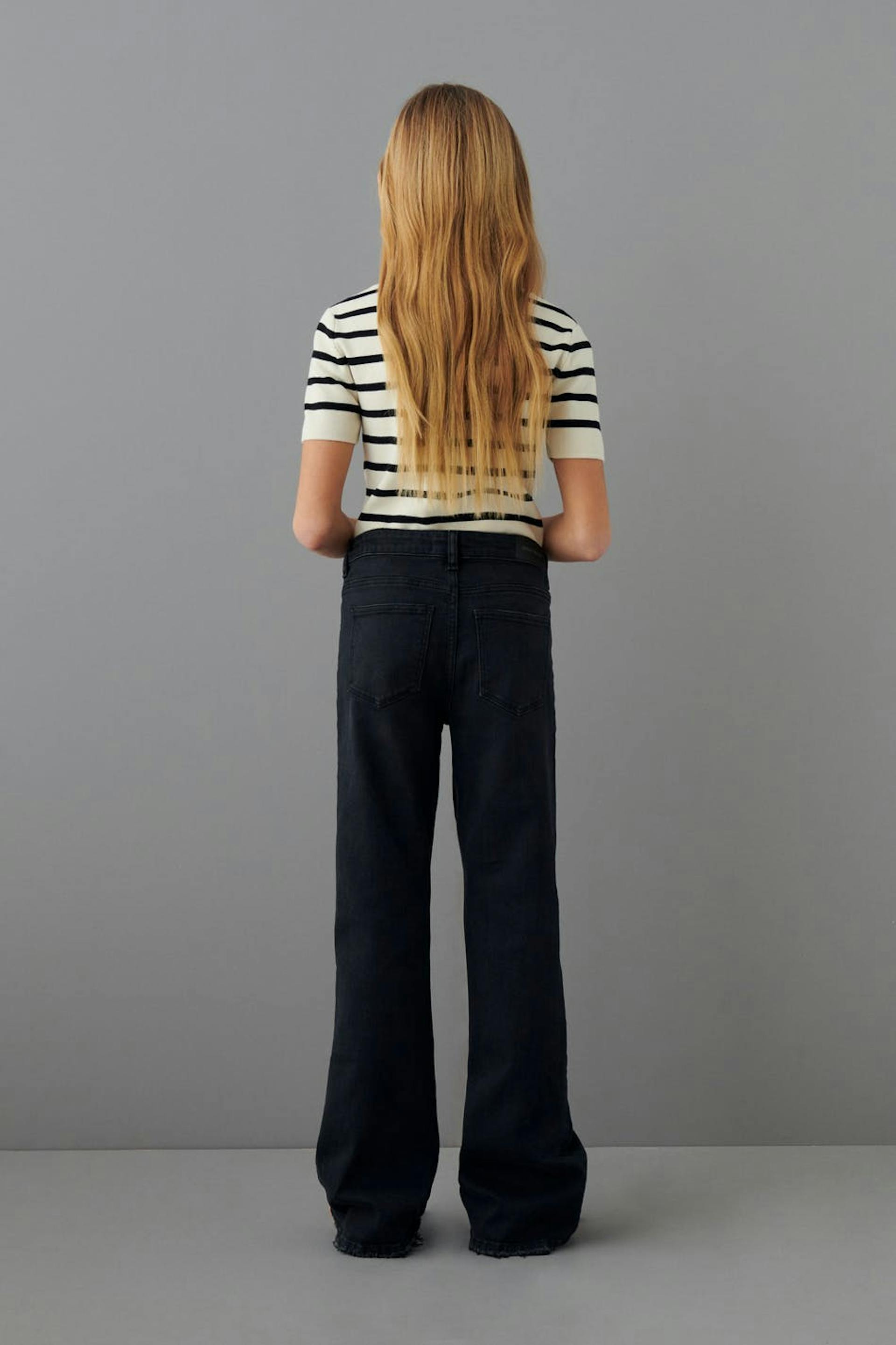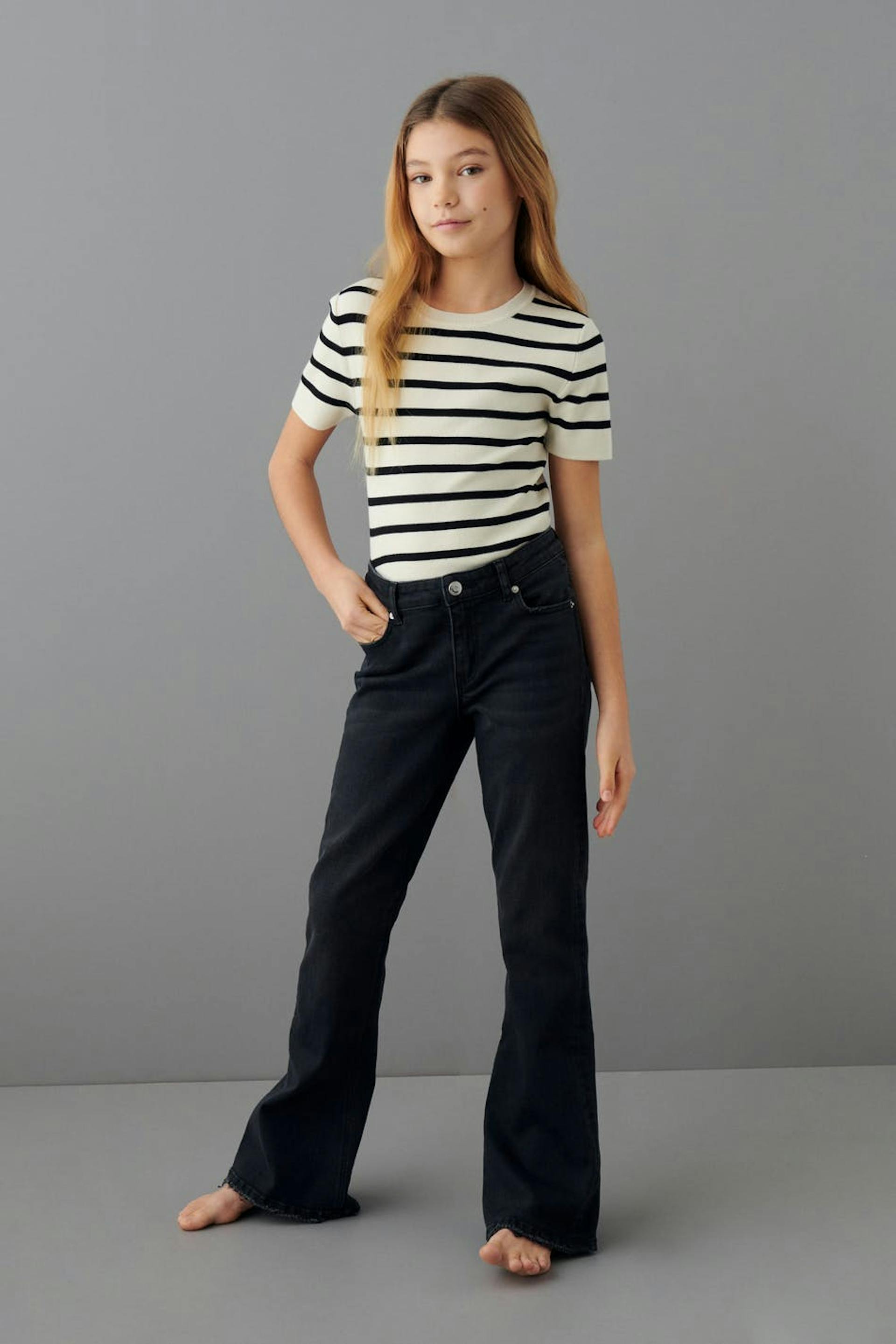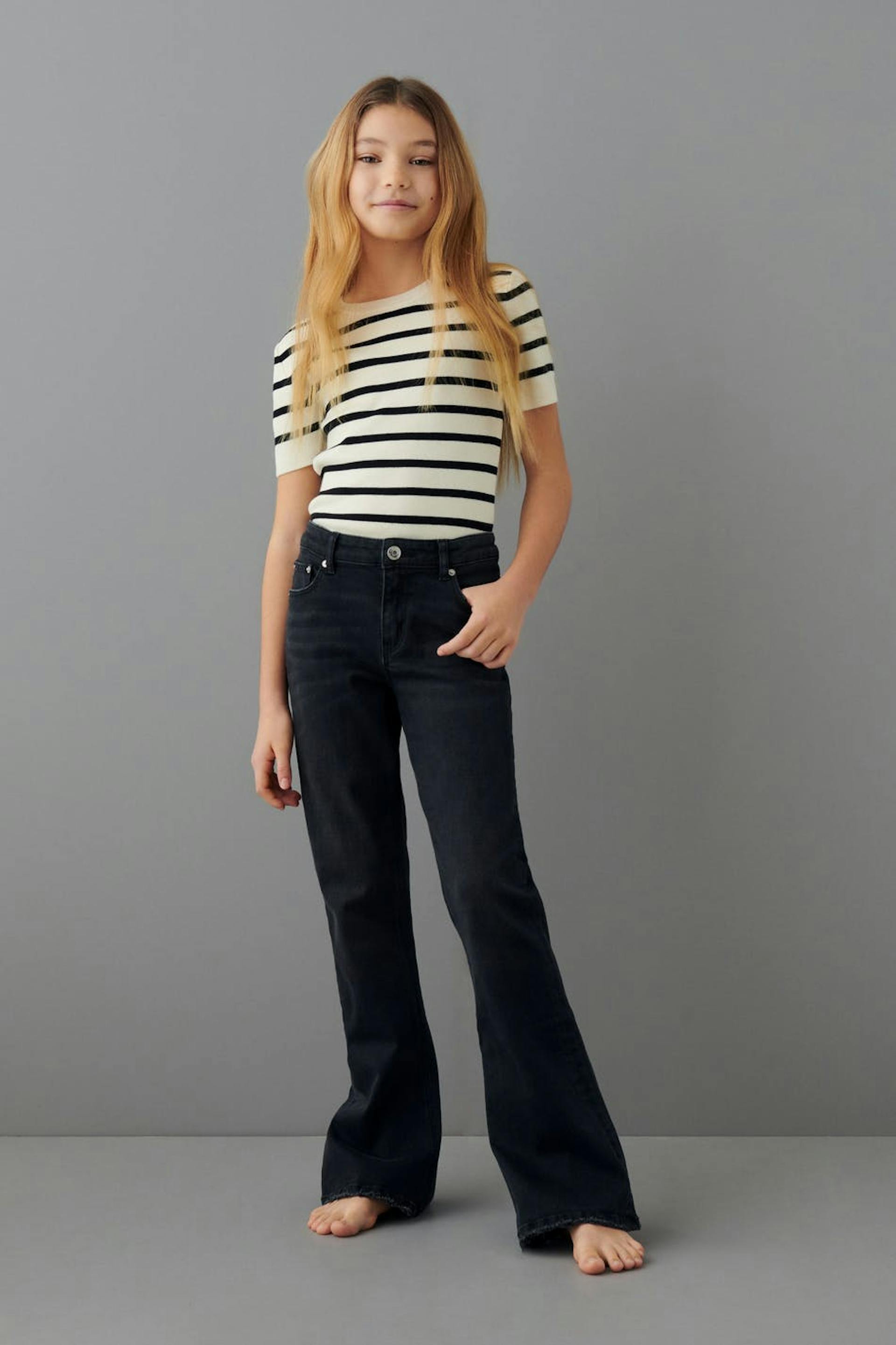 Bootcut jeans från vårt Young-sortiment med låg midja i denim med låg stretch. Jeansen är svarta och har utsvängda ben med normallängd. De har justerbar resår i midjan, rå kant nedtill och fickor fram och bak.
