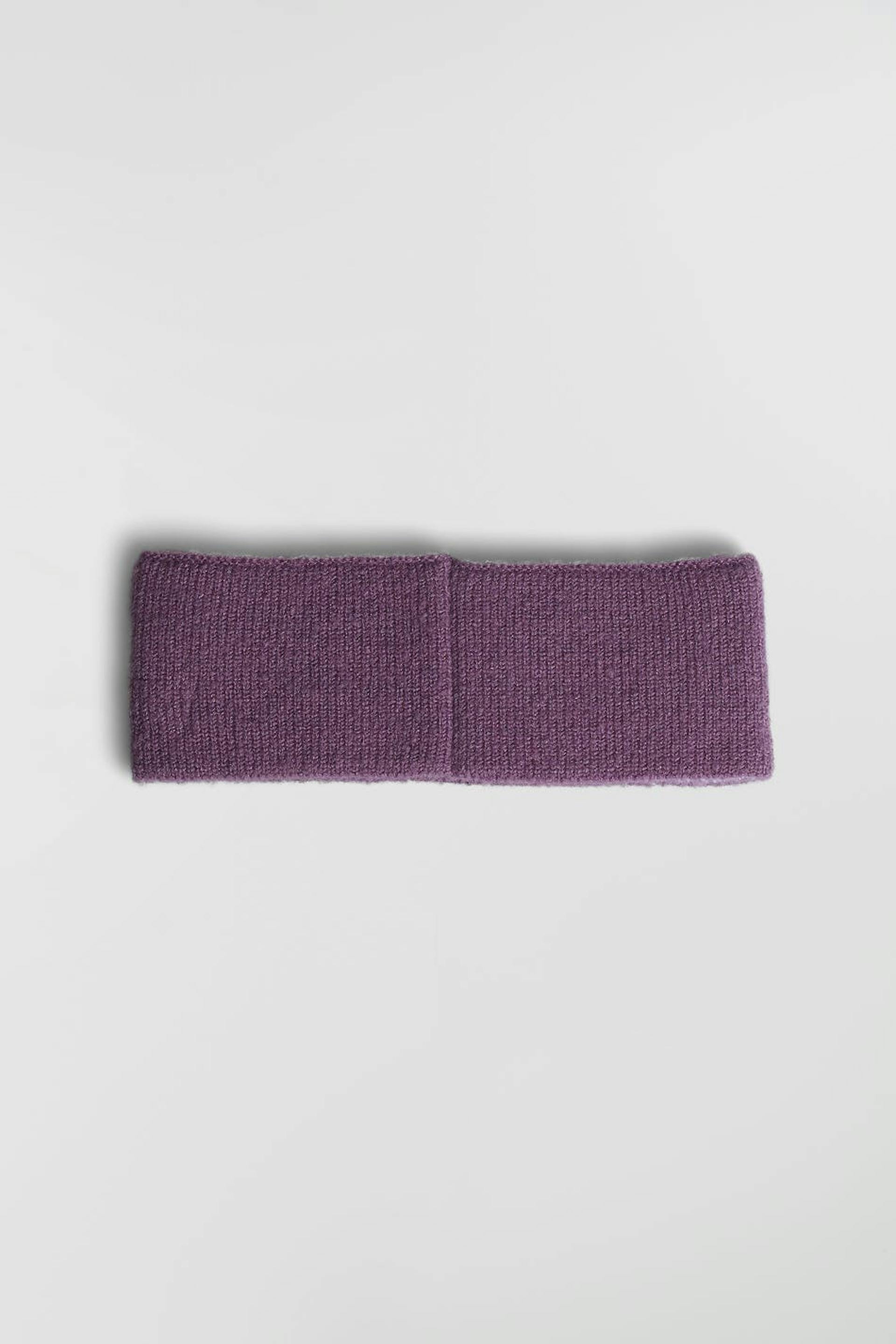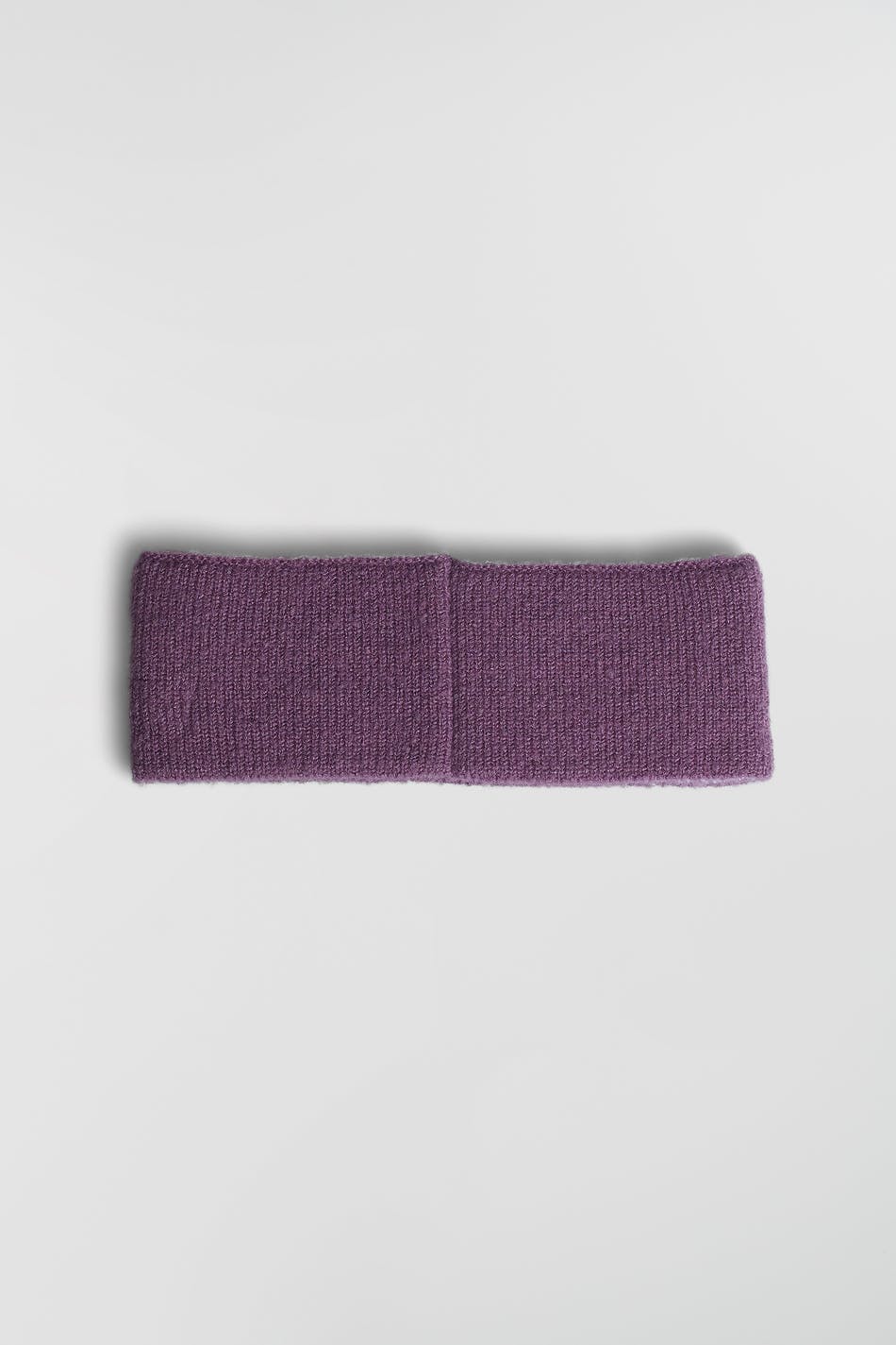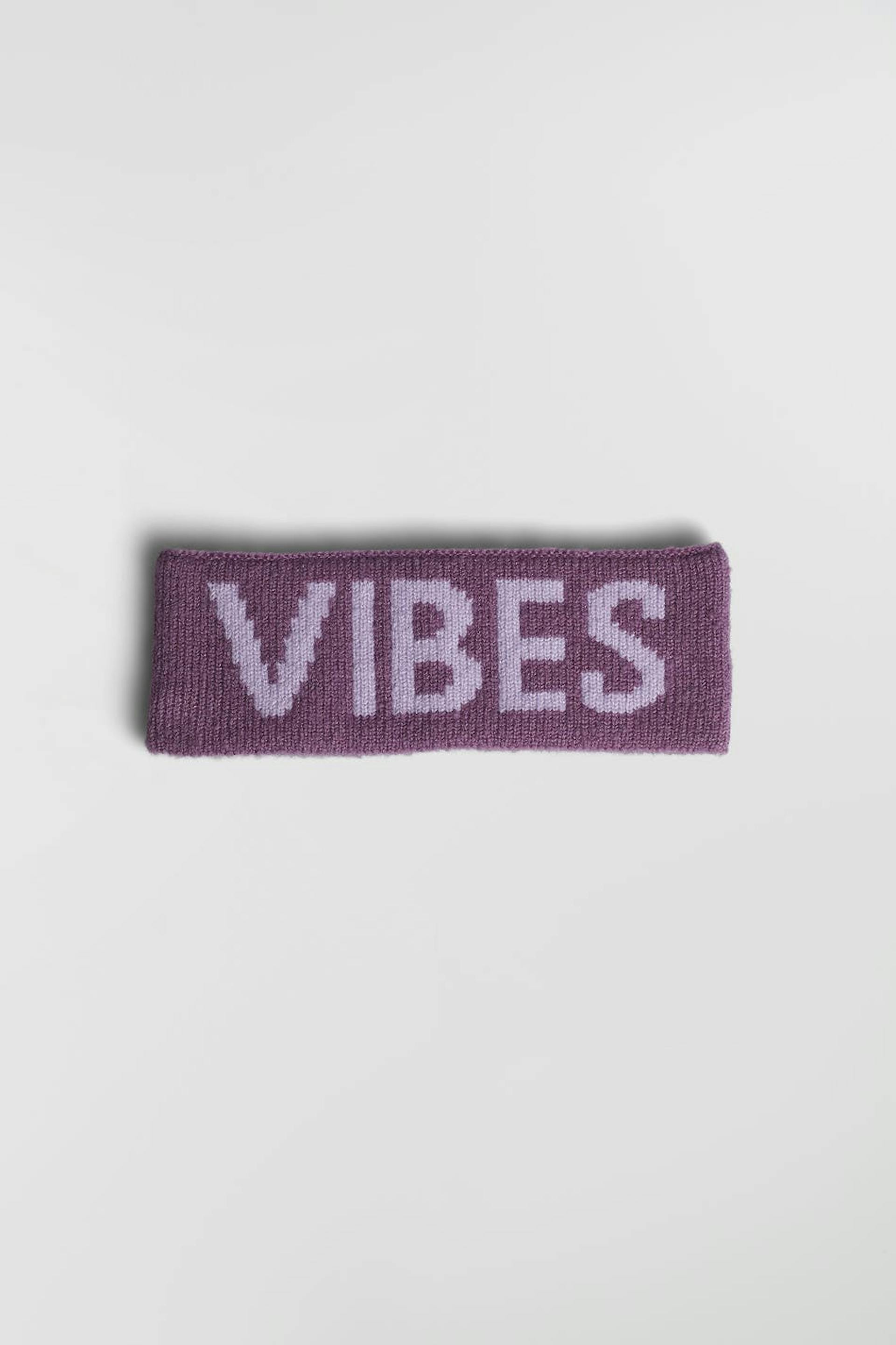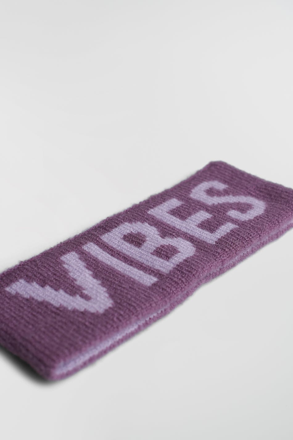 Stickat pannband från vårt Young-sortiment med en text på framsidan. Accessoaren är lila.