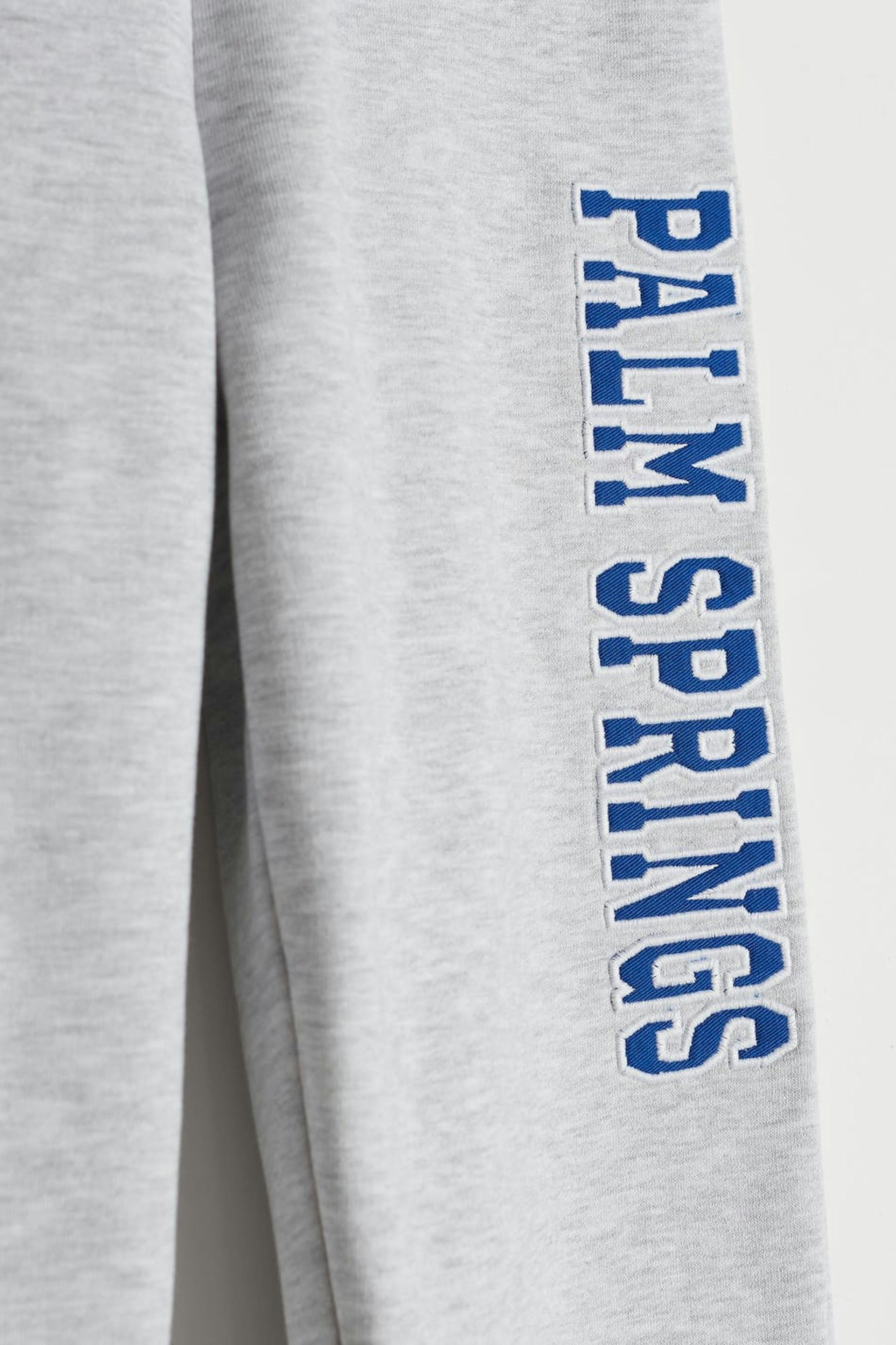 Mjukisbyxor från vårt Young-sortiment med en normal passform. Byxorna är gråa och har ett blått broderi med text på sidan. De har fickor på sidorna och en resår i midjan och vid bensluten.