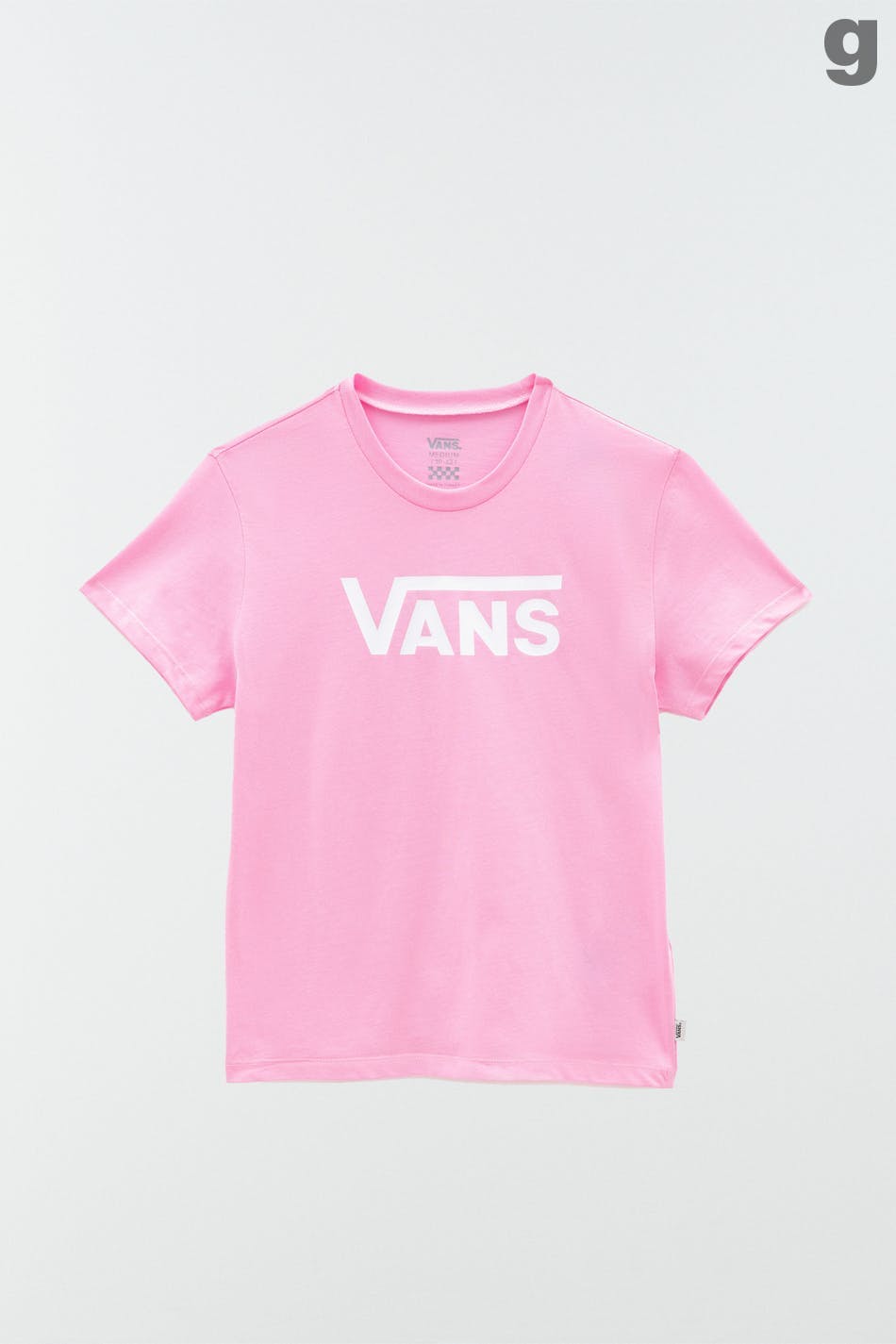 Kortärmad t-shirt från Vans med en vit printad logotyp framtill. T-shirten är rosa och har en rund halsringning.