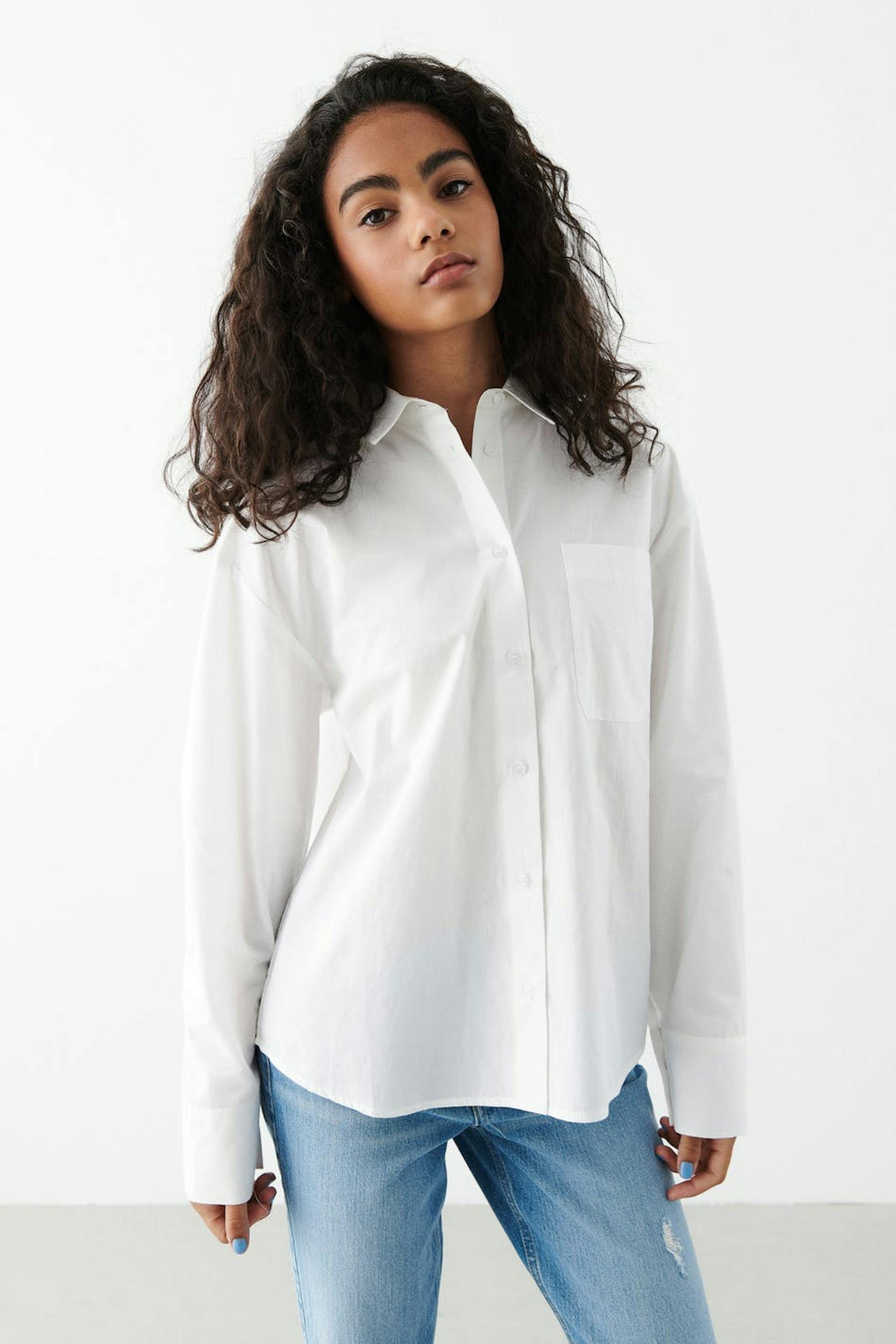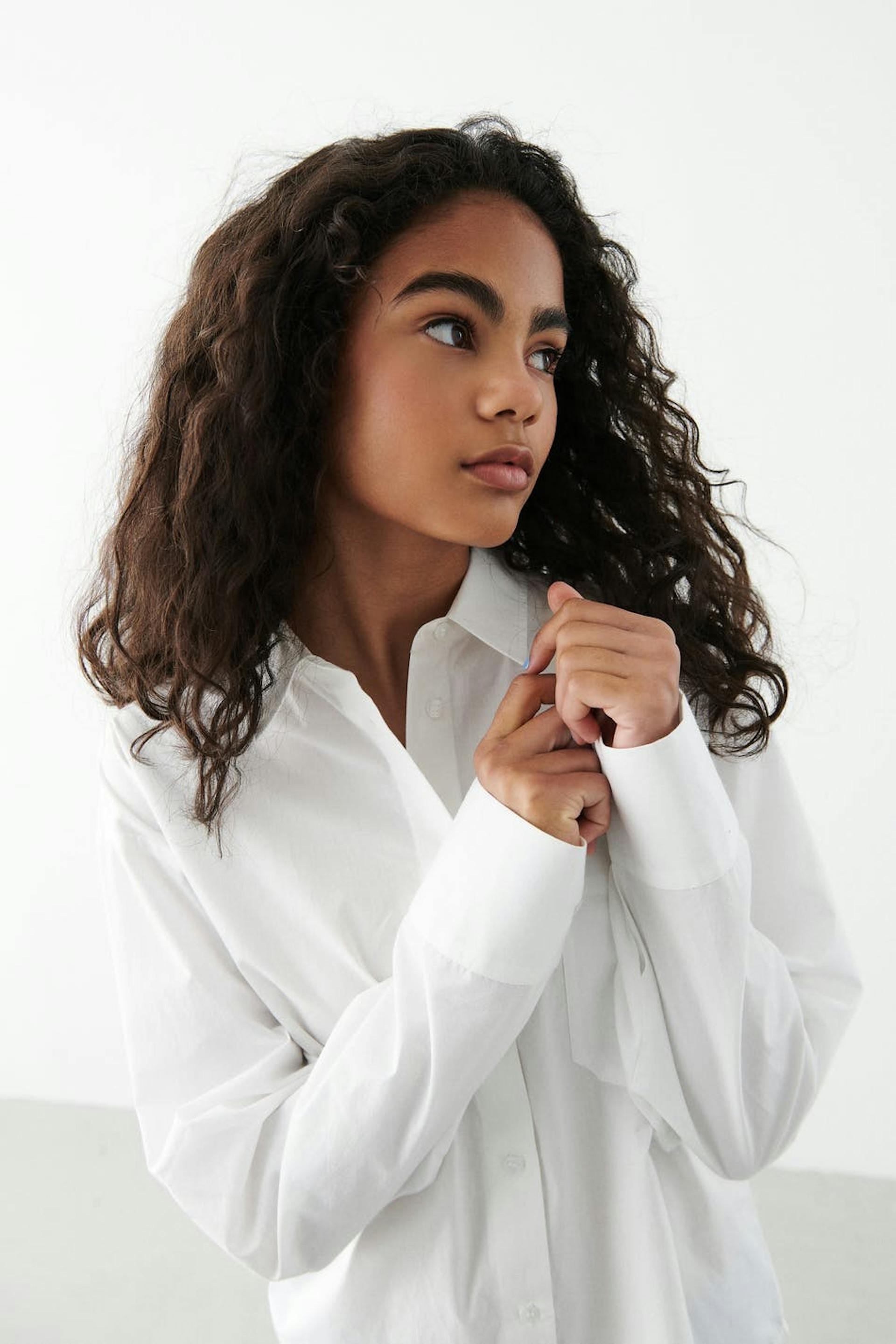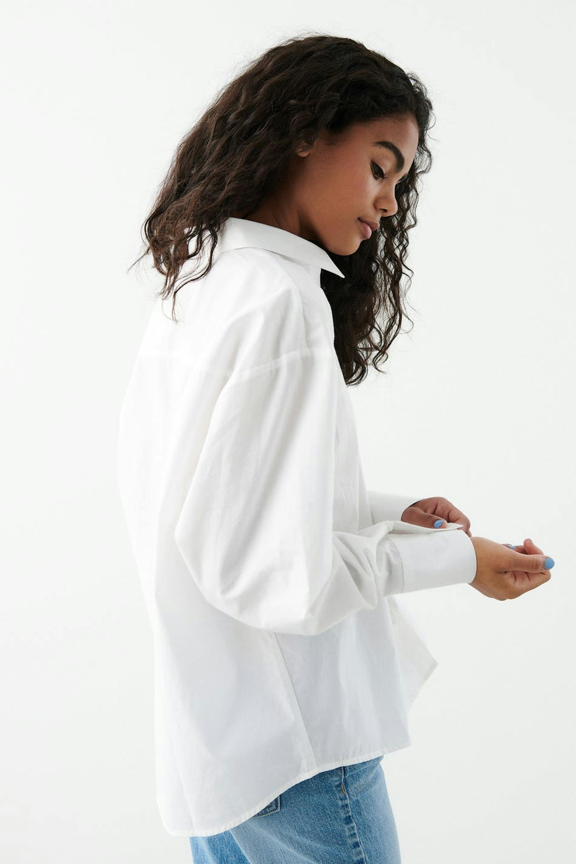 IZA & ELLE x YOUNG GINA TRICOT. Skjorta med oversize fit. Skjortan är vit och har knäppning fram. Den har krage och en bröstficka.