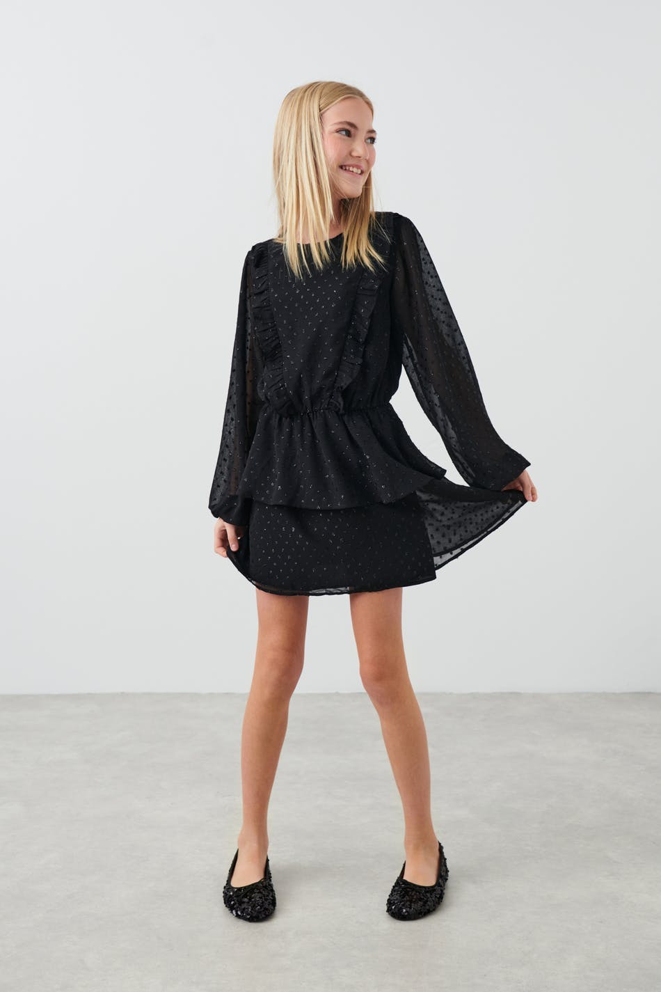 Y long sleeve frill dress