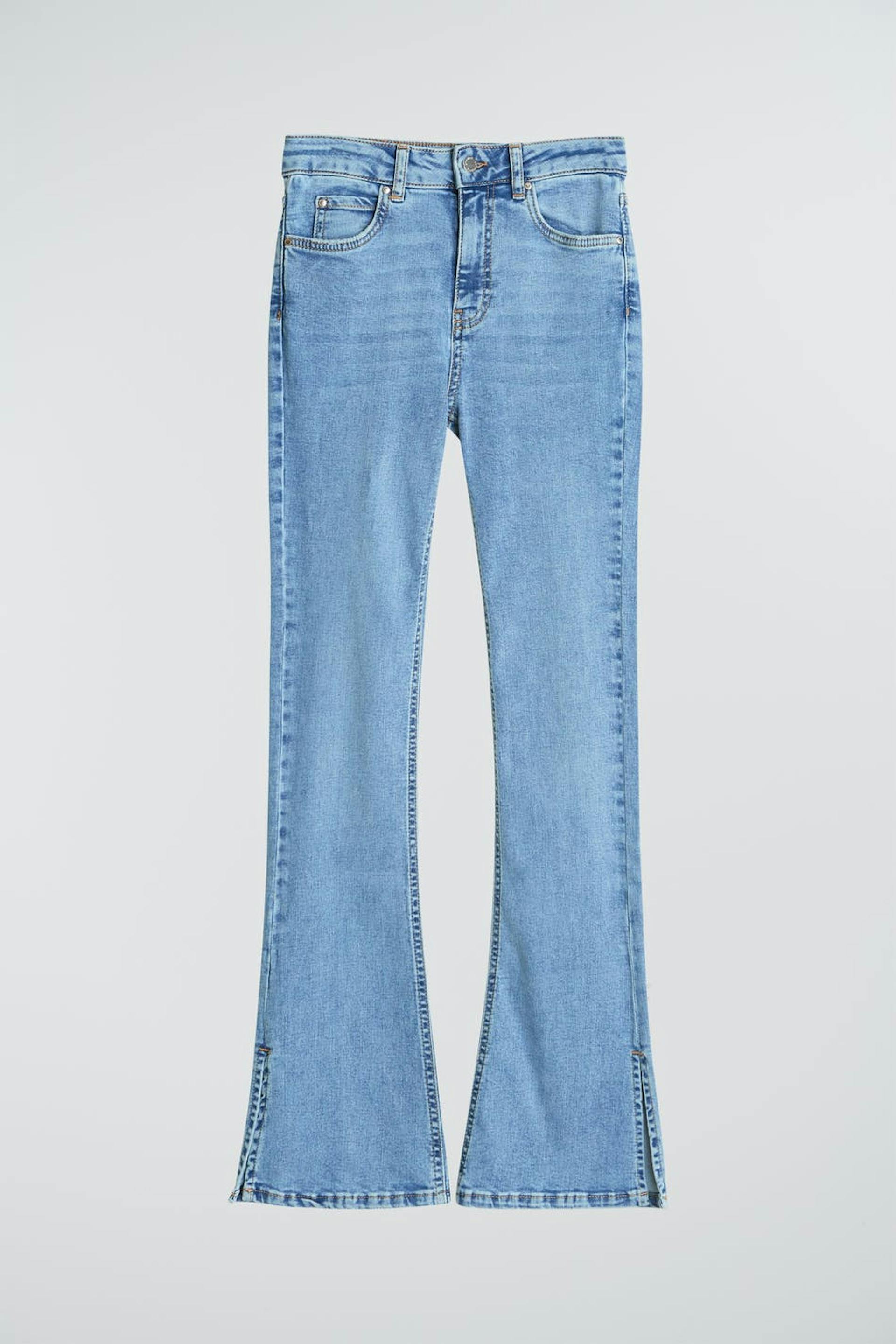 Petite jeans with a fitted fit. The jeans is blue and boot-cut and has a skinny fit. It has a high waist, comfort stretch and shorter leg length. Perfect for those who are 160 cm (5 ft 3 in.) or shorter.